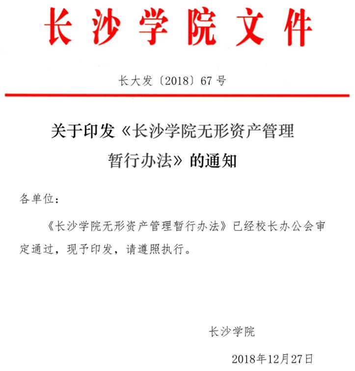 长沙学院无形资产管理暂行办法