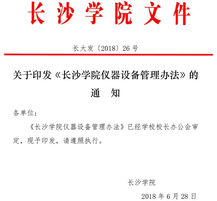 第四十一条 本办法自2018年7月1日起施行。此前颁布的有关仪器设备管理的规定与本办法相抵触的,按照本办法执行。《长沙学院固定资产处置暂行办法》(长大发〔2007〕59号)、《长沙学院仪器设备损坏、丢失赔偿处理办法》(长大发〔2007〕60号)、《长沙学院仪器设备管理办法》(长大教〔2007〕76号)、《长沙学院贵重仪器设备管理办法》(长大发〔2007〕77号)同时废止。