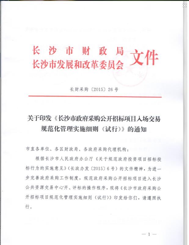长沙市政府采购公开招标项目入场交易规范化管理实施细则(试行)